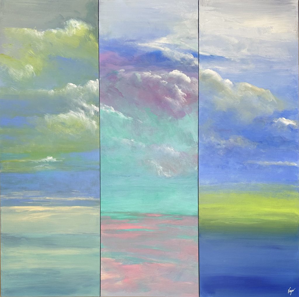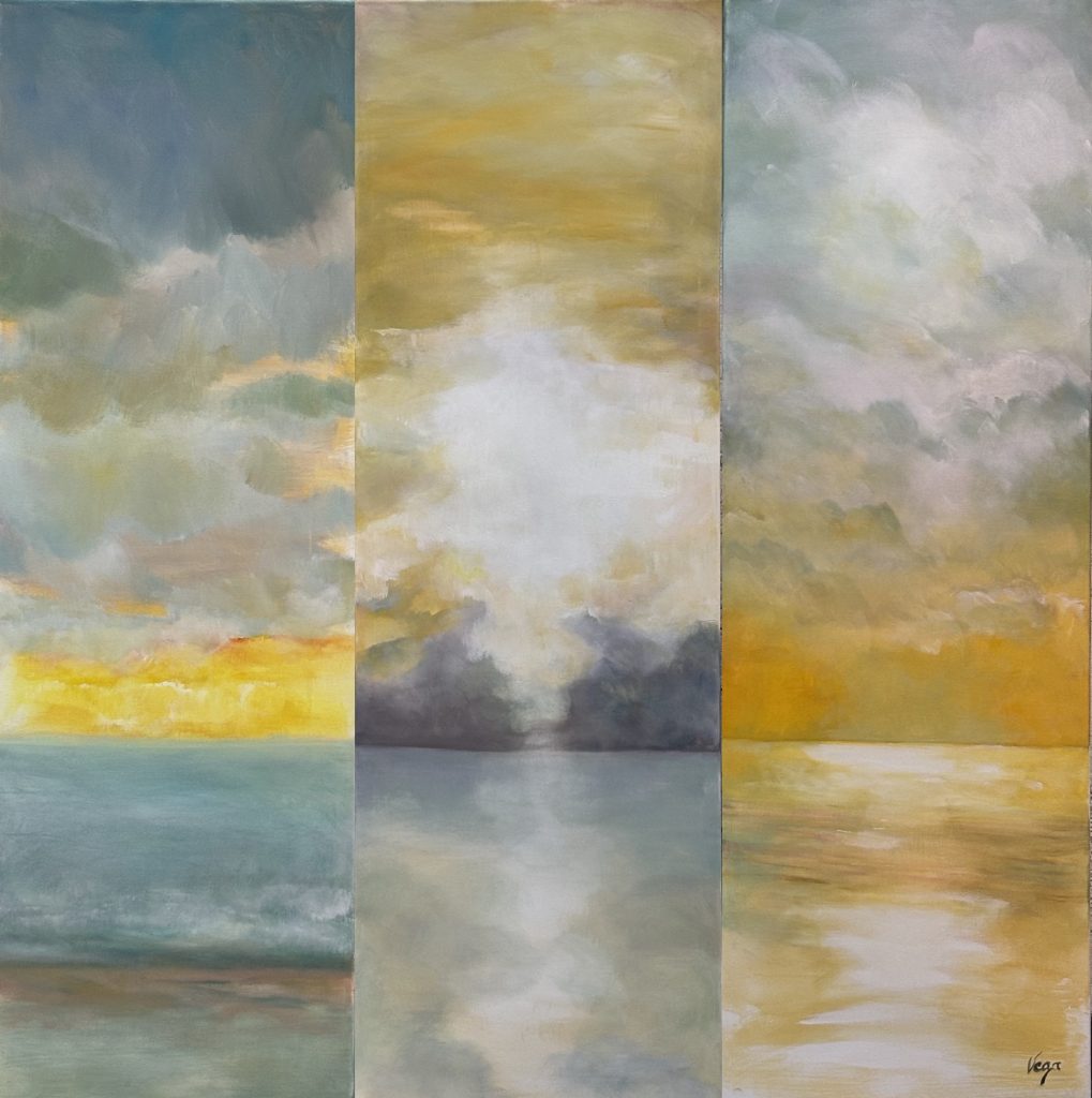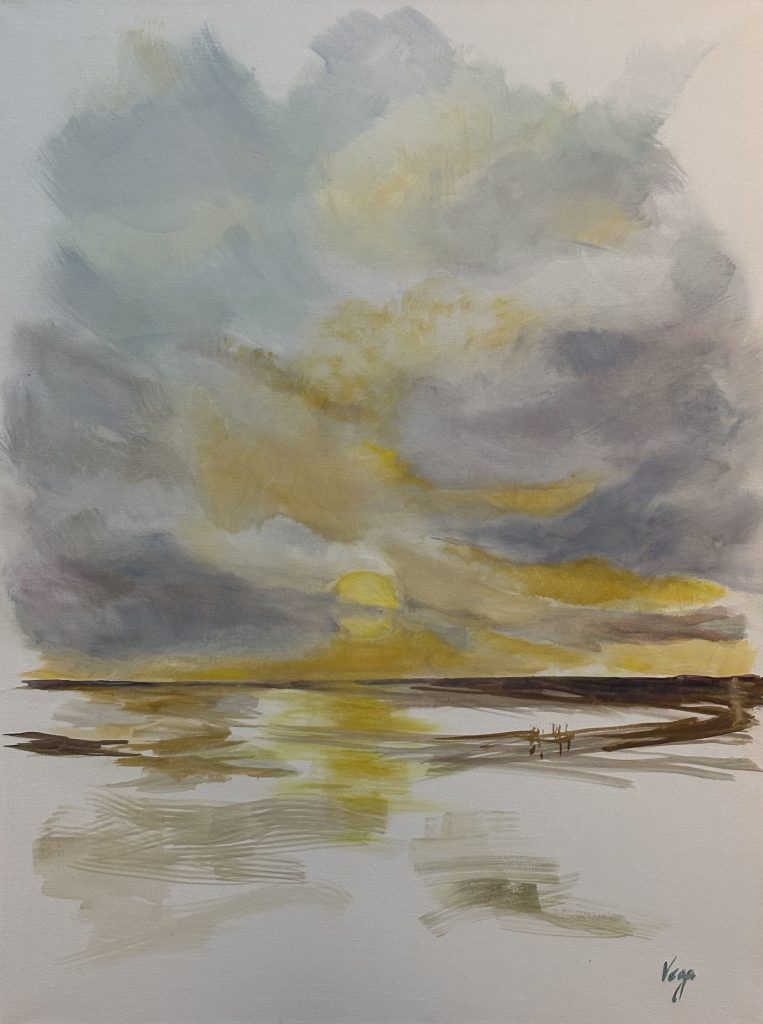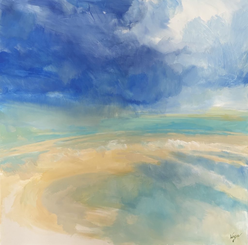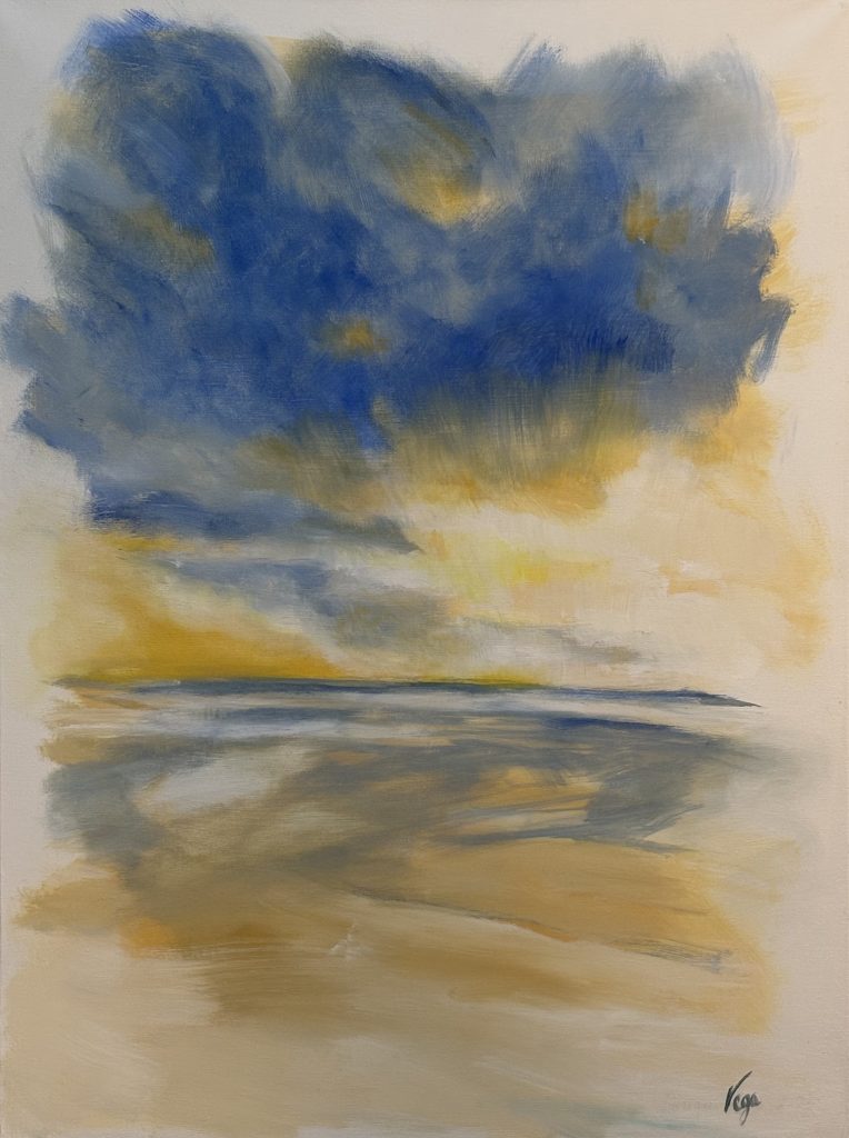Amoureuse des plages de la Côte d’Opale et de leur effet apaisant, j’ai envie d’offrir à d’autres personnes ce bien-être par une peinture atmosphérique toute en nuances. La couleur vibre et apaise les âmes. L’ombre et la lumière se répondent, indissociables.